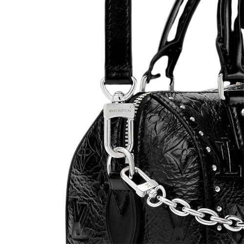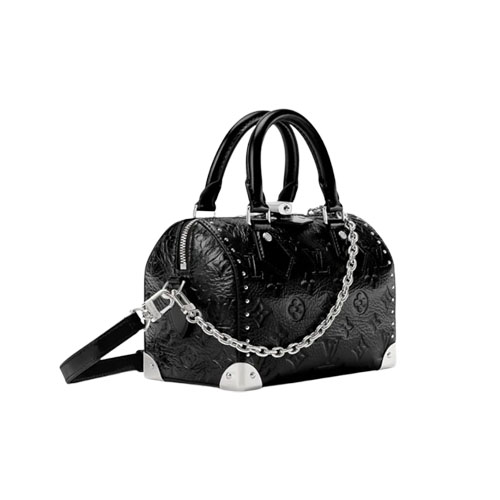 Reimagined in the House’s Monogram Saga signature, this version of the Speedy Trunk 20 has a distinct rock ‘n’ roll attitude. Adorned with silver-toned trunk details, it is made from calfskin, which goes through several unique processes to create the desired aged finish. Both the strap and chain are removable, and it can be worn cross-body, over the shoulder or carried by hand.