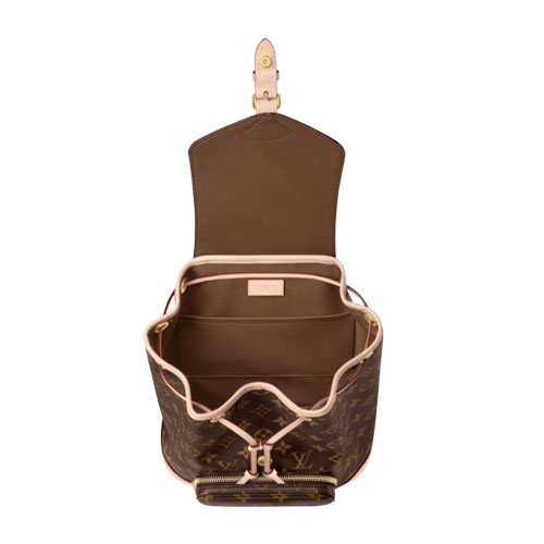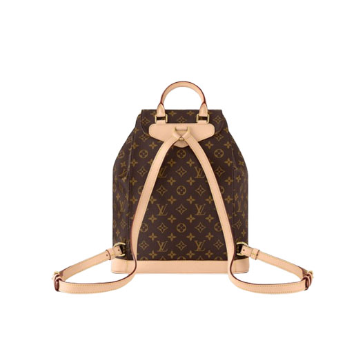 Designed by Nicolas Ghesquière, the Montsouris MM backpack in Monogram coated canvas is an ode to travel and adventure. Inspired by the Louis Vuitton Montsouris bag, created in 1994, this backpack has a front zipped pocket and secure drawstring and magnetic closure. The natural cowhide-leather trim perfectly complements the Monogram pattern.