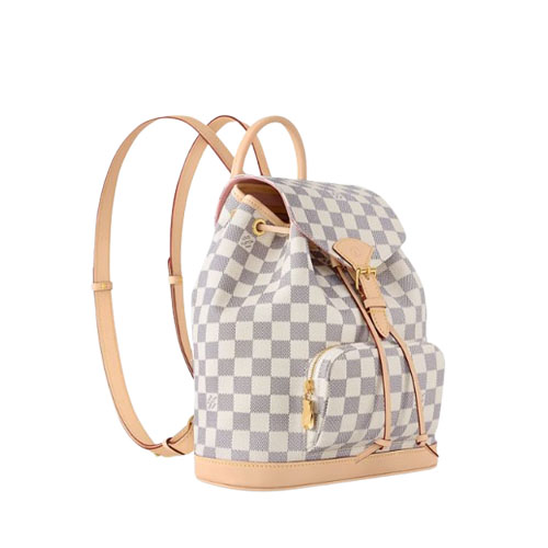 The Montsouris PM is reimagined for the season with the iconic Damier Azur motif. Applied using heliogravure printing, the signature pattern is complemented with gold-toned hardware and contrasting leather trims. This versatile backpack is sized to hold everyday essentials and includes a front zipped pocket to keep smaller items secure. The canvas straps are adjustable to ensure the perfect fit.