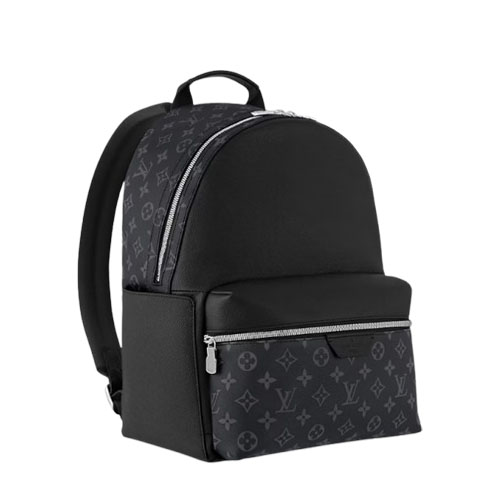 The cool styling of the Discovery Backpack takes on an elegant signature look as part of the Taigarama line. Finely embossed Taiga cowhide is paired with the House’s iconic Monogram canvas in classic black. Ideal for short trips or to carry everyday essentials, it offers multiple compartments, including a special tablet computer pocket.