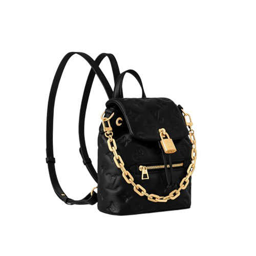 Introducing the Coussin Backpack Mini. This lightweight and versatile design is crafted from leather patterned with the House’s signature Monogram and is adorned with a removable Coussin chain. The functional gold-toned LV padlock secures all the essentials this mini format can carry for everyday use. Wear it as a backpack, over one shoulder, or carry it by hand.