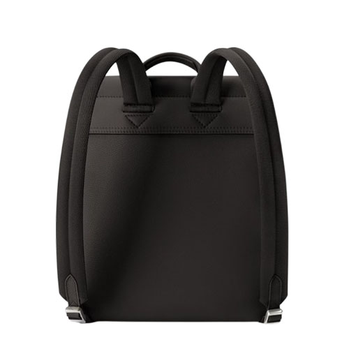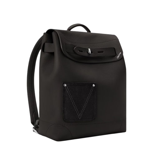 The Steamer Backpack in supple LV Touch calfskin leather blends heritage with modern design. Its grained exterior is accented by a suede front pocket with stitched V detailing. A spacious main compartment includes a padded pocket for a 16-inch laptop, while a drawstring closure and versatile strap enhance everyday functionality.