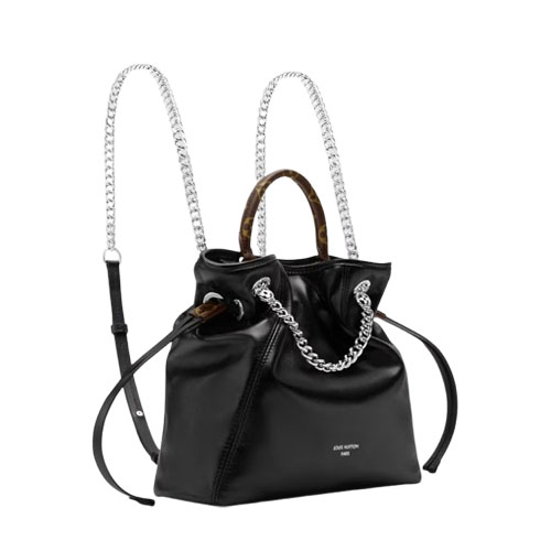 The LV Vibe collection introduces the Off Duty Backpack, a nonchalant hobo style that is perfect for everyday wear. Crafted from lamb leather, it is elevated with a jewel-inspired silver-toned chain that is adorned with a signature LV Circle. The functional design can be worn multiple ways, with options to transform it into a backpack or into a chain hobo.