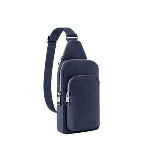 The Avenue Slingbag PM is crafted from waxy calfskin, a leather as durable as it is supple, and adorned with the embossed LV Initials of the LV Aerogram collection. It features a main compartment, a zipped front pocket, and a small zipped triangular pocket. The adjustable strap allows it to be worn on either shoulder.