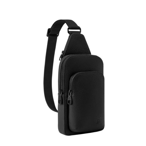 The Avenue Slingbag PM is crafted from waxy calfskin, a leather as durable as it is supple, and adorned with the embossed LV Initials of the LV Aerogram collection. It features a main compartment, a zipped front pocket, and a small zipped triangular pocket. The adjustable strap allows it to be worn on either shoulder.