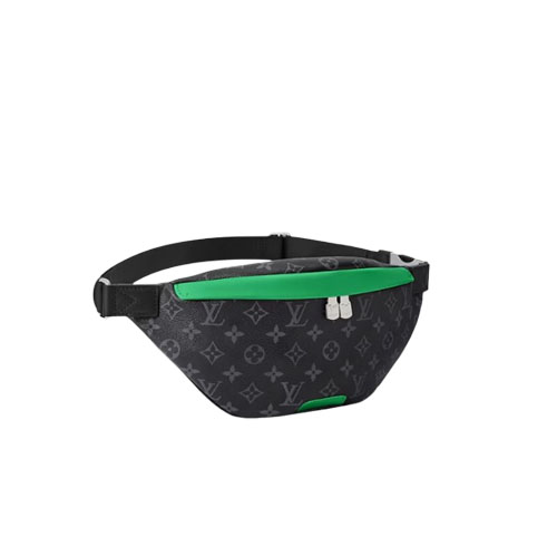 Whether worn on the shoulder, cross-body, or around the waist, this Discovery Bumbag in Monogram Eclipse canvas with colored leather accents and understated aged-silver-toned hardware looks great. The double-zipped closure keeps belongings secure while the flat pocket on back of the bag is ideal for more valuable items.