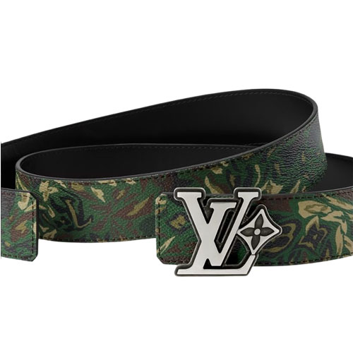 The LV Flower Camoflage 40mm Reversible Belt is a clever reinterpretation of the masculine motif long favored by outdoorsmen. The muted palette is transformed into a blend of swirled shapes and House signatures. As a sleek alternative, the reverse is crafted from black leather. The silver-toned buckle with the floral signature suits both fashion-forward options perfectly.
